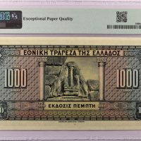 Ελλάδα Χαρτονόμισμα Τράπεζα Της Ελλάδος 1000 Δραχμές 1926 PMG MS65EPQ. Η γνησιότητα όλων των προϊόντων μας είναι εγγυημένη εφ όρου ζωής ενώ τυχόν ιδιαιτερότητες – ελαττώματα περιγράφονται αναλυτικά εφόσον υπάρχουν. (Κωδ. 10251)