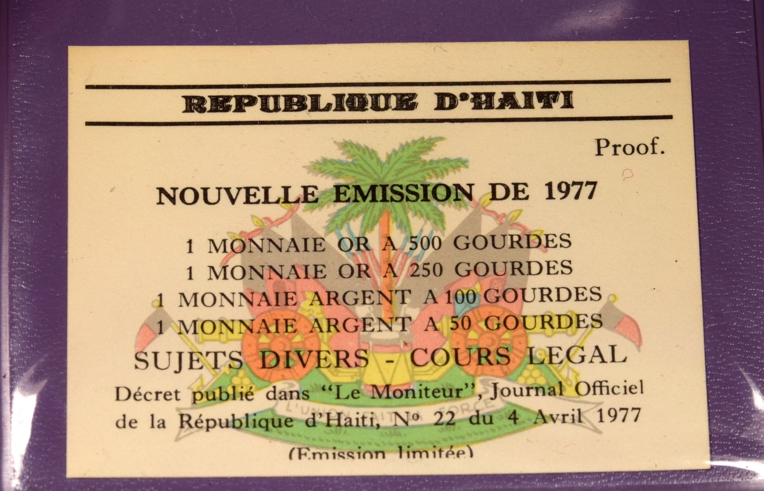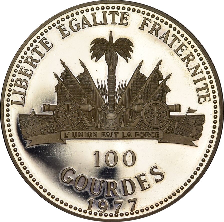Αϊτή Republic Of Haiti Silver Proof 100 Gourdes 1977 Με Θήκη. Η γνησιότητα όλων των προϊόντων μας είναι εγγυημένη εφ όρου ζωής ενώ τυχόν ιδιαιτερότητες – ελαττώματα περιγράφονται αναλυτικά εφόσον υπάρχουν. (Κωδ. 10137)