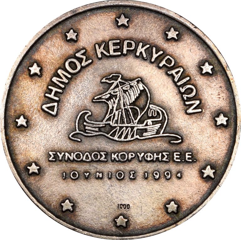 Ασημένιο Αναμνηστικό Μετάλλιο Δήμος Κερκυραίων Σύνοδος Κορυφής ΕΕ 1994. Στο φυσικό μας κατάστημα θα βρείτε μεγάλη ποικιλία ελληνικών και ξένων νομισμάτων και χαρτονομισμάτων καθώς και όλα τα απαραίτητα αναλώσιμα για την συλλογή σας. (Κωδ. 10160)