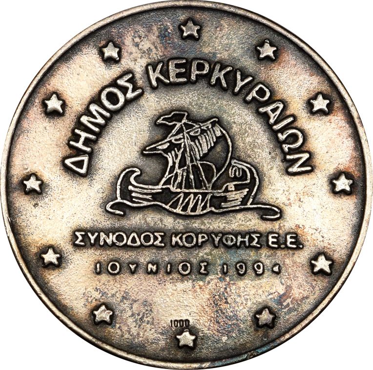 Ασημένιο Αναμνηστικό Μετάλλιο Δήμος Κερκυραίων Σύνοδος Κορυφής ΕΕ 1994. Στο φυσικό μας κατάστημα θα βρείτε μεγάλη ποικιλία ελληνικών και ξένων νομισμάτων και χαρτονομισμάτων καθώς και όλα τα απαραίτητα αναλώσιμα για την συλλογή σας. (Κωδ. 10161)