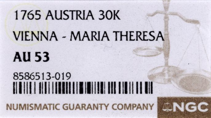 Αυστρία Austria 1765 Silver 30 Kreuzer Vienna Maria Theresa NGC AU53. Η γνησιότητα όλων των προϊόντων μας είναι εγγυημένη εφ όρου ζωής ενώ τυχόν ιδιαιτερότητες – ελαττώματα περιγράφονται αναλυτικά εφόσον υπάρχουν. (Κωδ. 10266)