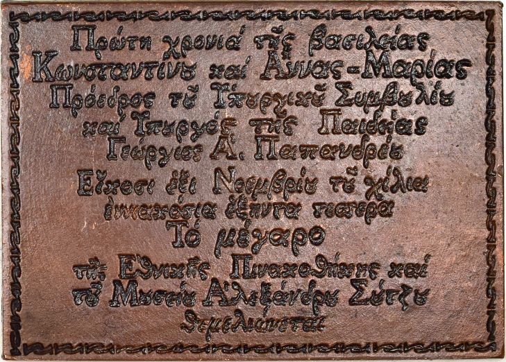 Χάλκινο Μετάλλιο – Πλακέτα Θεμελίωση Εθνικής Πινακοθήκης 1964. Η γνησιότητα όλων των προϊόντων μας είναι εγγυημένη εφ όρου ζωής ενώ τυχόν ιδιαιτερότητες – ελαττώματα περιγράφονται αναλυτικά εφόσον υπάρχουν. (Κωδ. 10264)