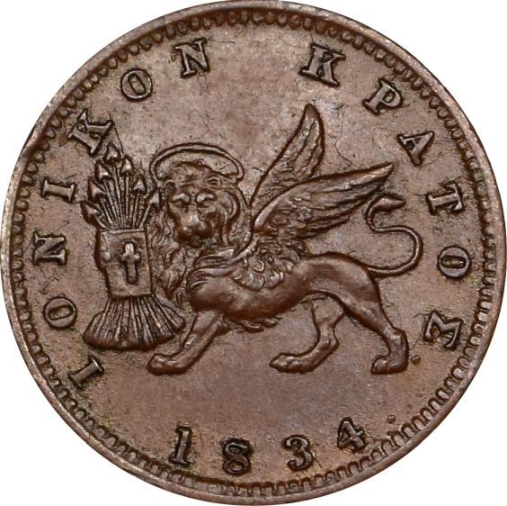 Ελλάδα Νόμισμα Ιονικό Κράτος 1 Λεπτό 1834. Η γνησιότητα όλων των νομισμάτων μας είναι εγγυημένη εφ όρου ζωής ενώ τυχόν ιδιαιτερότητες – ελαττώματα περιγράφονται αναλυτικά εφόσον υπάρχουν. (Κωδ. 10229)