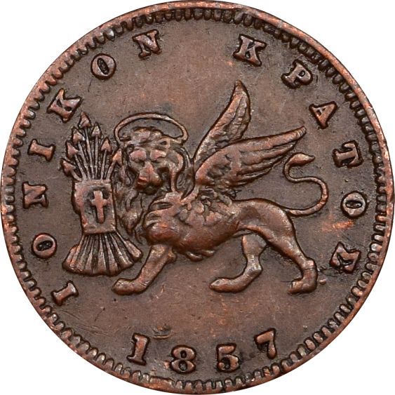 Ελλάδα Νόμισμα Ιονικό Κράτος 1 Λεπτό 1857. Η γνησιότητα όλων των νομισμάτων μας είναι εγγυημένη εφ όρου ζωής ενώ τυχόν ιδιαιτερότητες – ελαττώματα περιγράφονται αναλυτικά εφόσον υπάρχουν. (Κωδ. 10228)