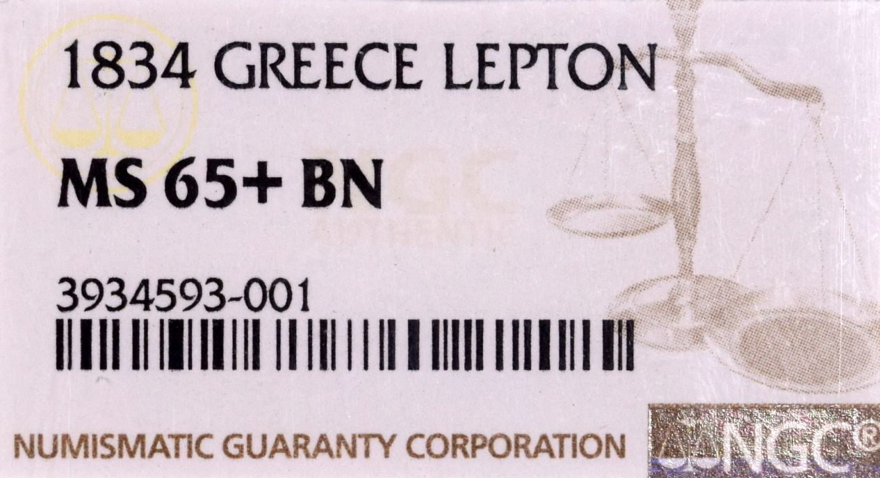 Ελληνικό Νόμισμα Βασιλιάς Όθωνας 1 Λεπτό 1834 NGC MS65+BN. Η γνησιότητα όλων των νομισμάτων μας είναι εγγυημένη εφ όρου ζωής ενώ τυχόν ιδιαιτερότητες – ελαττώματα περιγράφονται αναλυτικά εφόσον υπάρχουν. (Κωδ. 10230)