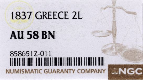 Ελληνικό Νόμισμα Βασιλιάς Όθωνας 2 Λεπτά 1837 NGC AU58 BN. Η γνησιότητα όλων των νομισμάτων μας είναι εγγυημένη εφ όρου ζωής ενώ τυχόν ιδιαιτερότητες – ελαττώματα περιγράφονται αναλυτικά εφόσον υπάρχουν. (Κωδ. 10259)