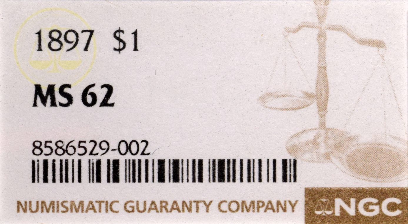 Ηνωμένες Πολιτείες Αμερικής United States Silver Morgan Dollar 1897 NGC MS62. Η γνησιότητα όλων των προϊόντων μας είναι εγγυημένη εφ όρου ζωής ενώ τυχόν ιδιαιτερότητες – ελαττώματα περιγράφονται αναλυτικά εφόσον υπάρχουν. (Κωδ. 10241)