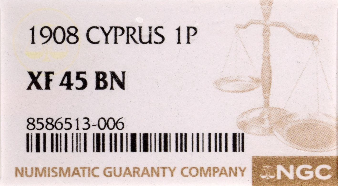 Κύπρος Cyprus Copper 1 Piastre 1908 NGC XF45 Rare Date. Η γνησιότητα όλων των προϊόντων μας είναι εγγυημένη εφ όρου ζωής ενώ τυχόν ιδιαιτερότητες – ελαττώματα περιγράφονται αναλυτικά εφόσον υπάρχουν. (Κωδ. 10242)