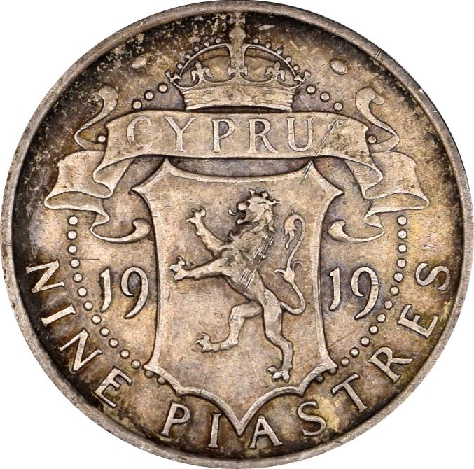 Κύπρος Cyprus Silver 9 Piastres 1919