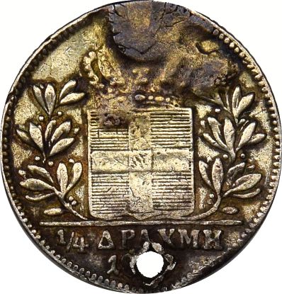 Όθωνας Ασημένιο Νόμισμα 1/4 Δραχμή 1855 Με Τρύπα. Η γνησιότητα όλων των νομισμάτων μας είναι εγγυημένη εφ όρου ζωής ενώ τυχόν ιδιαιτερότητες – ελαττώματα περιγράφονται αναλυτικά εφόσον υπάρχουν. (Κωδ. 10156)