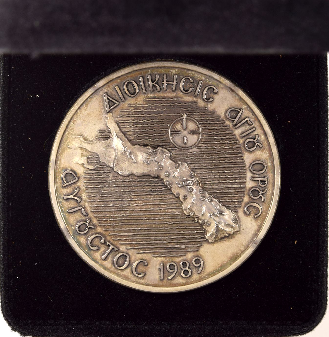 Θρησκευτικό Μετάλλιο Διοίκηση Αγίου Όρους Αύγουστος 1989 Με Κουτί