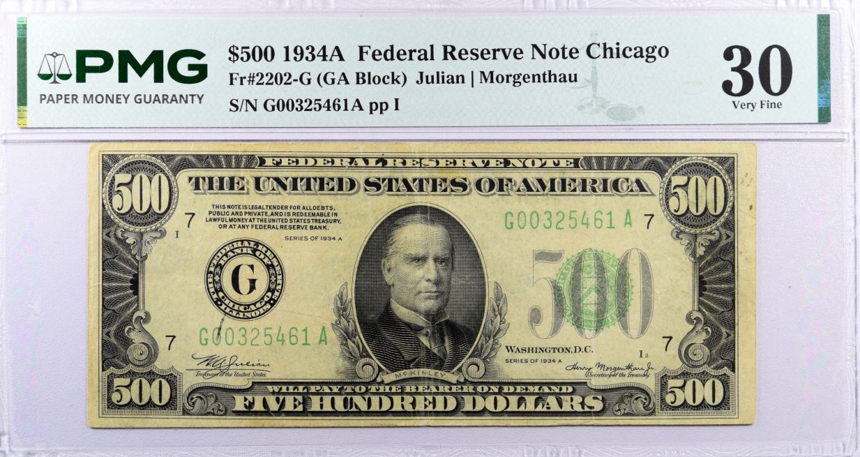 United States Of America 500 Dollars 1934A Federal Reserve Note Chicago PMG 30. Η γνησιότητα όλων των προϊόντων μας είναι εγγυημένη εφ όρου ζωής ενώ τυχόν ιδιαιτερότητες – ελαττώματα περιγράφονται αναλυτικά εφόσον υπάρχουν. (Κωδ. 10245)